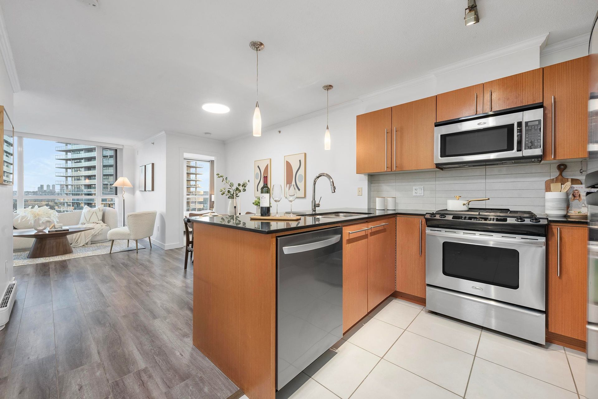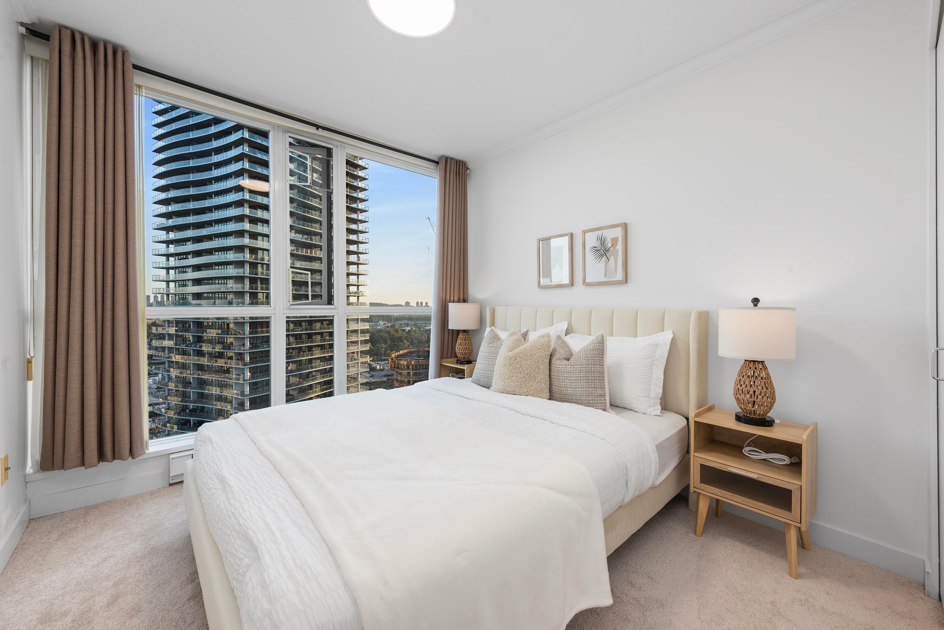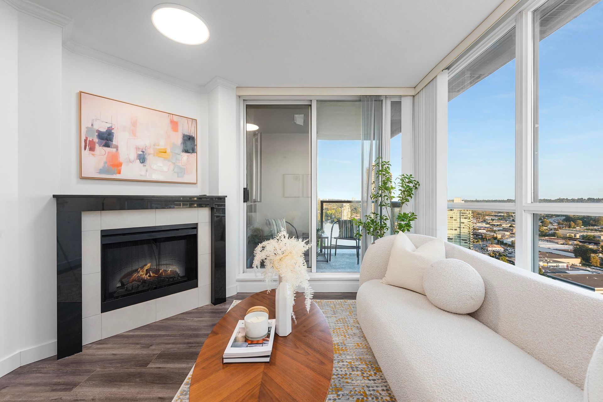 Welcome to Fitzgerald at Brentwood Gate by award-winning developer Ledingham McAllister! This bright and spacious 2 bed, 2 bath home offers 841 sqft of well-designed living with stunning city views. Features include an open-concept layout, cozy fireplace, separated bedrooms, and a covered balcony perfect for relaxing or entertaining. The kitchen boasts granite countertops, stainless steel appliances, and a gas range. The primary bedroom offers a large walk-in closet and private ensuite. New carpets installed in both bedrooms. Enjoy excellent amenities including a fitness centre, hot tub, and lounge. Unbeatable location in the heart of Brentwood—steps to SkyTrain, Brentwood Mall, Whole Foods, parks, and restaurants. Includes 2 parking stalls and 1 storage locker. A must see!